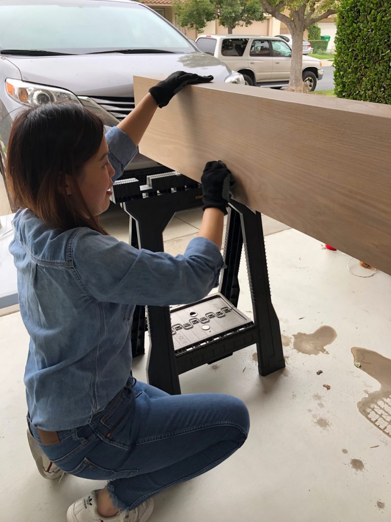 I love my nail gun! This has saved us so much time, I don’t know what we did without it. Can you imagine if we tried to use a hammer when nailing 70 sticks into the front panel of our mid-century modern murphy bed box? It would have taken forever!