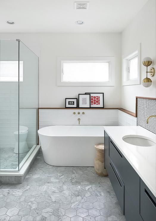It works in bathrooms psychologically because it stimulates our brain signals with bright vibes. So after a shower, seeing a fun visual offers a sense revigoration.
