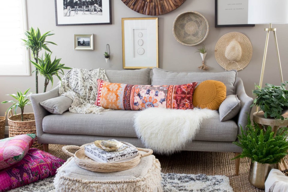 - There is a reason for the word throw pillows! You literally can throw them anywhere and everywhere! If you do not like the color of your sofa, like in my case, just add some throw some pillows that you love. This will draw they eye to the pillows instead of the dingy old sofa. Look how nice these Studio McGee pillows look!